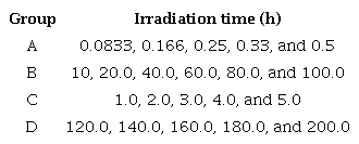 The radiation times were set and are shown in Table1.