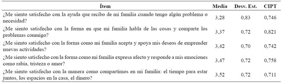 Conclusions: Family APGAR in Cartagena dental adult patients seems to be a highly valuable screening instrument with excellent internal consistency but questionable construct validity. Additional studies must be conducted in order to obtain scales with adequate psychometric properties for construct measurement.