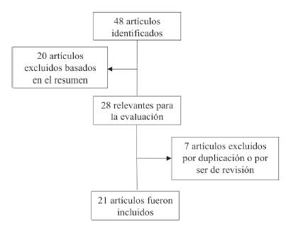 Los resúmenes de los artículos, que inicialmente se reconocieron como potencialmente relevantes al estudio fueron evaluados por los investigadores, identificando si cumplían con los criterios de inclusión mencionados anteriormente, para ello, cada artículo fue revisado exhaustivamente y se procedió a clasificar la información en una matriz con el programa Excel, resaltando título, autor, año, propósito del estudio, proteína evaluada, aporte clínico y comentarios de los investigadores.