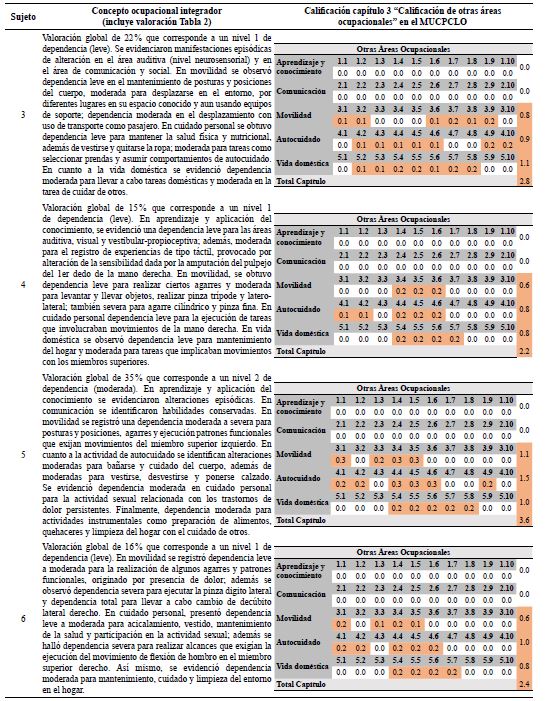 Como resultado de la calificación y complementario al proceso, se emitió un concepto ocupacional, el cual se articula como eje para el posterior análisis con los instrumentos de calificación contemplados en el capítulo 3 "Calificación de otras áreas ocupacionales" del MUCPCLO10.