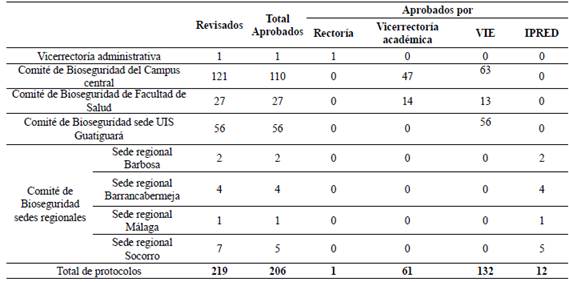 A partir de junio de 2020 se comienzan a instaurar los lineamientos institucionales para el retorno a actividades presenciales esenciales de administración, investigación y servicios en la Universidad. Para ello, mediante la Resolución de Rectoría n.° 608 del 5 de junio de 2020, se emitieron lineamientos para la preparación, aprobación y actualización de los protocolos de bioseguridad de la UIS, y en junio 16 de 2020, mediante la Resolución de Rectoría n.° 648 se aprueba el primer protocolo de bioseguridad. El Protocolo de Bioseguridad de la UIS incluyó disposiciones sobre uso de elementos de protección personal, medidas dentro y fuera del lugar de trabajo, protocolos de limpieza y desinfección y uso del pasaporte de movilidad digital, que como requisito para su obtención requirió completar de manera satisfactoria un curso virtual sobre bioseguridad. Posteriormente, se emitieron las Resoluciones de Rectoría 649 y 662 que aprobaron los protocolos de bioseguridad de los laboratorios de investigación y de servicios en el Parque Tecnológico Guatiguará y en el campus de Bucaramanga. Con estas disposiciones, a partir de junio se realizó el retorno a las actividades presenciales de investigación y de servicios consideradas esenciales en la Universidad.