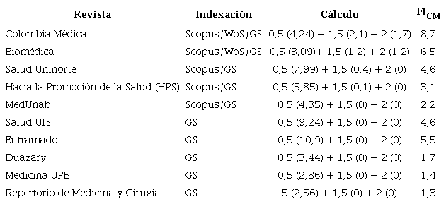A modo de ejemplo, se calcularon los FIcm de 10 revistas de ciencias de la salud (Tabla 1).