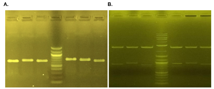 Confirmación de clonación del ORF de E6/E7: se hizo una digestión enzimática del plásmido pMinit 2.0 + ORF de E6/E7 con la enzima de restricción EcoRI-H de NEB (Massachusetts, USA), durante 20 minutos a 37 °C. Luego se realizó una electroforesis en gel de agarosa al 1 % con HydraGreen ACTGene (Nueva Jersey, USA) y se visualizó el ADN en el transiluminador de Accuris Instruments (Nueva Jersey, USA). Posteriormente, se confirmó por PCR convencional la ligación del inserto y, finalmente, para corroborar las identidades de los amplicones obtenidos, se secuenciaron por el método de Sanger (Macrogen, Korea, Seúl).