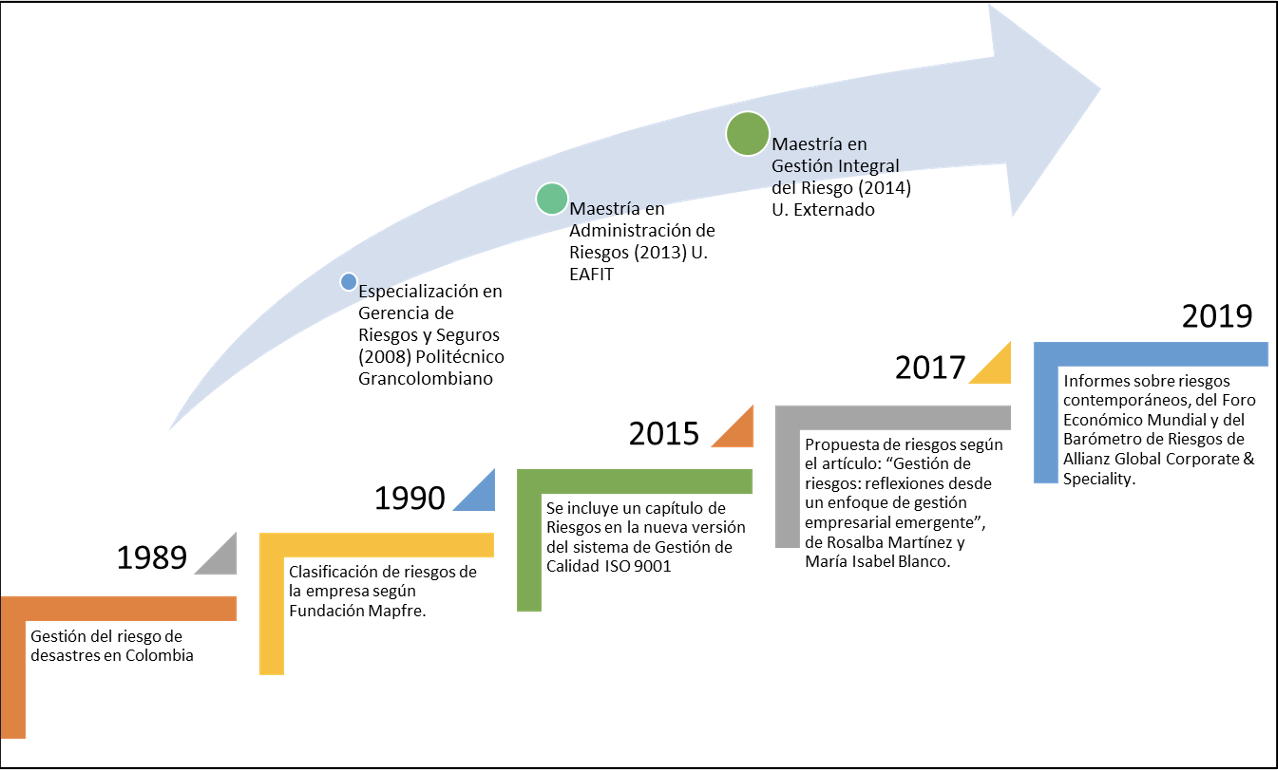 La gestión de riesgos siempre ha hecho parte de manera más o menos formal del manejo de las organizaciones (etimológicamente hablando, la palabra riesgo se asocia con risco, peñasco escarpado que para los marineros medievales representaba un peligro en alta mar (Gómez, 2014)), y en la historia reciente, como parte de la política pública de los gobiernos.