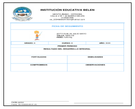 La ficha de los estudiantes se compone de dos partes, una parte técnica y una de seguimiento; la parte técnica permite apreciar toda la información del estudiante y esta se puede actualizar en cualquier momento por cualquiera de los profesores. Por otra parte, la sección de seguimiento muestra la información del desempeño que tuvo un estudiante en cada uno de sus grados escolares, esta información solo puede ser suministrada y modificada por el docente encargado cada año (Ver figuras 9 y 10).