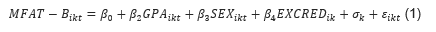 Donde MFTA corresponde al puntaje del estudiante . en el MFTA-B; GPA es el puntaje total del estudiante en secundaria (considerado por la literatura como logros académicos previos); SEX toma el valor de 1 si el estudiante es hombre EXCRED toma el valor de 1 si se ofrece al estudiante incentivo por buen desempeño;