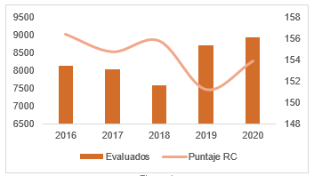 En línea con lo anterior, y debido al comportamiento atípico en el número de evaluados y en el puntaje promedio en RC en 2019, se opta por estimar la ecuación (4) excluyendo este año del análisis, con la finalidad de observar el comportamiento comparado del período (2016-2018), respecto del año 2020.