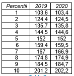 Realizando el ejercicio de presentar el promedio del puntaje de razonamiento cuantitativo al interior de la distribución de percentiles, se observa una tendencia constante; no obstante, este promedio fue más bajo antes de pandemia en el percentil 10 (201,2 en 2019; 202,2 en 2020) (Tabla 2). En línea con este resultado y avalando los argumentos de Abadía et al (2021), en el percentil 1 se presentó una significativa reducción del número de evaluados en 2020, lo que indica que los estudiantes de rendimiento bajo y de características menos favorables disminuyeron su presencia en las pruebas Saber Pro durante el año de pandemia (Tabla 3)