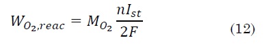 𝑊𝑂2,𝑐𝑎,𝑖𝑛 is the oxygen flow that reaches the cathode, and 𝑊𝑂2,𝑟𝑒𝑎𝑐 is the oxygen flow consumed in the reaction. The hydro-gen and oxygen flows consumed in the electrochemical reaction are given as fol-lows: