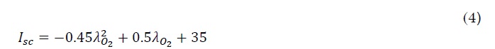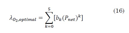 In [20] a linear control system was de-signed, whose control objective was to reg-ulate the oxygen excess ratio 𝜆𝑂2 by track-ing an optimal profile, while the requested net power is delivered and fuel consump-tion is minimized. The control system con-sisted in a Linear Quadratic Regulator (LQR), a linear Kalman filter and the fol-lowing parameterization of the optimal profile: