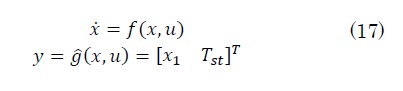 Source: authorsFor overcoming modeling errors, the linear control is adjusted by introducing a linear Kalman filter with an additional non-physical variable used to properly estimate the state space variables [23]. Thus, since the measurable states are 𝑥1 and 𝑇𝑠𝑡, a non-linear model is defined from the Eq. (9), with output variables 𝑦=[𝑥1𝑇𝑠𝑡]𝑇, as follows:
