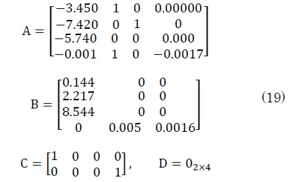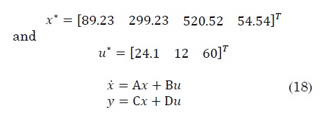 A linear version of the model given in the Eq. (17) is obtained around the operating point defined by