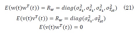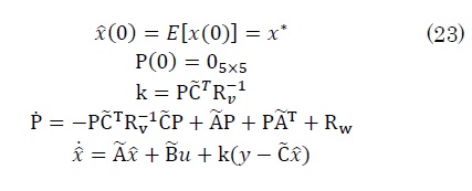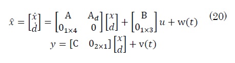 where the matrices A, B, C and D are given in the Eq. (19). The variable d is a non-physical state added in order to eliminate any possible offset that can be presented in steady state, i.e. it introduces an integral term to the Kalman filter. The signals w and v are the plant and measurement noise, and both are assumed to be zero-mean Gaussian process, that is