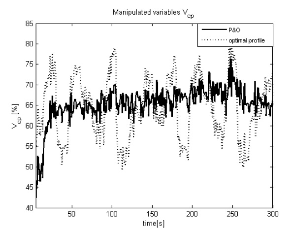 The P&O algorithm is a technique used in photovoltaic applications for maximizing the output power by tracking the MPPs, which defines a hill climbing optimization problem in dynamic optimization [21]-[22]. The P&O algorithm tracks the optimum value of a variable of a dynamic system by repeatedly changing the value of another suitable variable, i.e. the perturbed variable. To find this value, it relies on the assumption that the variable to be optimized has a single optimum in the range of values of the perturbed variable. In this paper, it is aimed to supply the requested load power with minimum 𝐼𝑠𝑡, i.e. with minimum fuel consumption as derived in the Eq. (11), because reductions in 𝐼𝑠𝑡 pro-duce diminution on the hydrogen flow required to supply the load power. Thus, the perturbed variable is the oxygen excess ratio 𝜆𝑂2 and the variable to be optimized is the net power 𝑃𝑛𝑒𝑡=𝑃𝑠𝑡−𝑃𝑐𝑚, where 𝑃𝑠𝑡 stands for the stack power, while 𝑃𝑐𝑚 rep-resents the compressor power. As a result, the P&O method behaves as a master con-troller that fix the reference value of 𝜆𝑂2, and the LQR behaves as a slave system that manipulates the compressor voltage 𝑉𝑐𝑝 to obtain such reference value of 𝜆𝑂2 under perturbations.