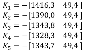Aunque en este caso el ángulo de referencia no es constante, estas ganancias permiten su seguimiento con un grado de error aceptable. Para los diferentes modelos lineales se obtiene el mismo valor . si se definen polos de lazo cerrado comunes.