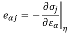 Finalmente, el tensor piezoeléctrico con tensión constante 𝑑𝛼𝑗 definido bajo condiciones de . y 𝜎 controlados es dada por (16), donde los tensores 𝑒𝛼𝑗 y 𝑑𝛼𝑗 están relacionados a través de la regla (17).