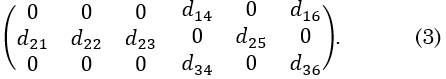Por ejemplo, en el caso particular de este trabajo donde se van a considerar estructuras monoclínicas con grupo puntual 2, se tiene que el tensor piezoeléctrico toma la siguiente forma:
