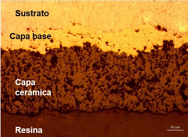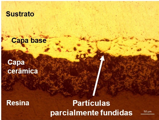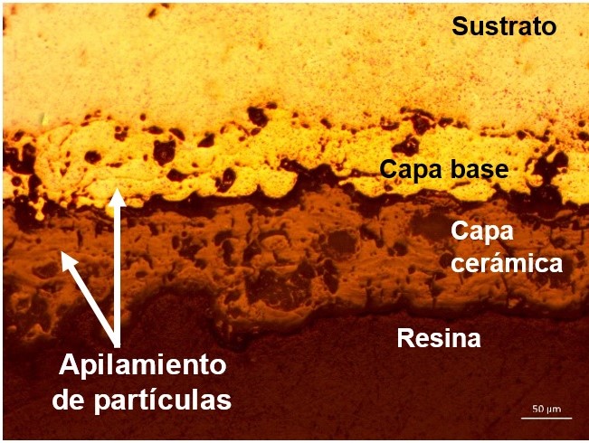 La capa base en las barreras térmicas cumple una función triple: mejoramiento de la adhesión entre el sustrato y la capa cerámica, proteger el sustrato contra la corrosión y oxidación y reducción de los esfuerzos causados por la diferencia de coeficientes de dilatación térmica entre la capa cerámica y el sustrato [7].
