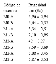 Los valores rugosidad aritmética media (Ra) obtenidos para las probetas se presentan en Tabla (5).