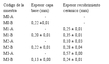 Los espesores medidos para cada uno de los recubrimientos se muestran en la Tabla 6