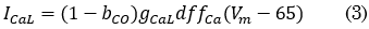 The equations to calculate bco and ICaL are given by Eq. (2) and (3):