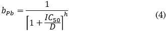To develop a basic model of the Pb++ effect on ICaL, the steady-state fraction of block (bPb) was used. Hill’s equation has been used to fit the concentration-response relationships for ligand block. It describes the fraction of the macromolecule saturated by ligand as a function of the ligand concentration; it is used for determining the degree of cooperativeness of the ligand binding to the receptor. In this model, the kinetics of the channel would be considered unchanged in the presence of the Pb++, Eq. (4).