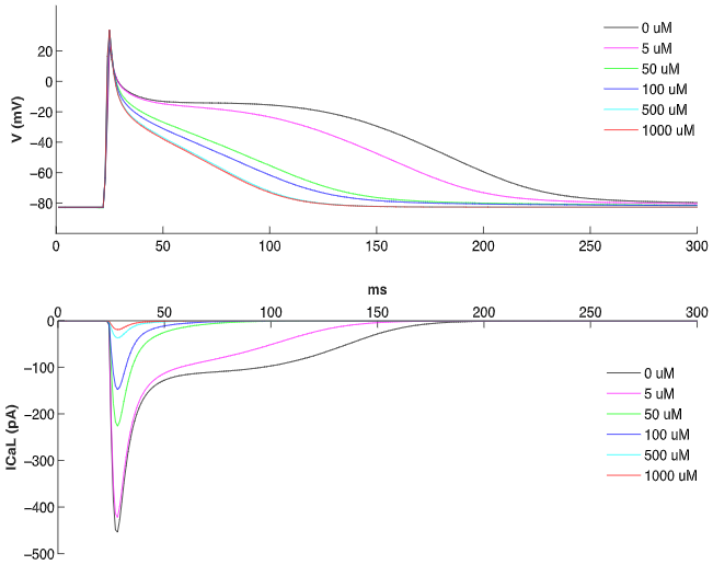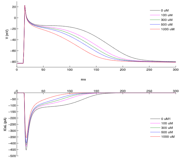 The results also showed that Pb++ blocks the ICaL current in a greater fraction as the concentration increases. This extends its action in time, which results in an APD shortening, as experimentally demonstrated [14]. This analysis is consistent