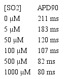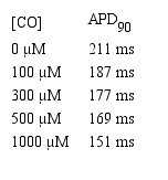 Table 1 shows the APD90 decreasing values as a function of the different CO concentrations. The increase in CO concentration generated an APD shortening.
