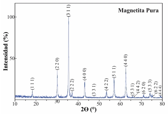difracción obtenido para la magnetita en polvo. Se aprecia un comportamiento
