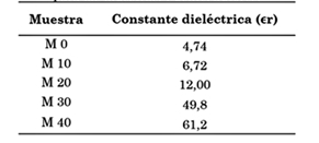 En la Tabla 3 se presentan los valores promedios de ϵr hallados para cada una de las muestras. En ella es posible observar claramente el aumento de ϵr con el incremento en la concentración de magnetita.