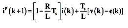 El control predictivo propuesto, estima el comportamiento futuro y evalúa una función objetivo. El estado de conmutación del puente inversor para el intervalo siguiente es definido por aquella secuencia que minimiza el error en la corriente. La predicción se realiza a partir del modelo matemático que describe el sistema. En (5) se indica la representación en tiempo discreto que modela el convertidor VSI con conexión a red mostrado en Fig. 1, donde v(K) es el voltaje de las ramas del inversor en el instante k y es el período de muestreo. Reemplazando la derivada mediante (6) y despejando se obtiene (7), donde es posible determinar el valor predictivo de la corriente para el siguiente instante de muestreo. Para evaluar la expresión se requiere conocer valores presentes: de i(k).v(K), e(k). El valor de e(k) se obtiene por estimación utilizando muestras anteriores en (5). El valor actual estimado de la tensión de la red