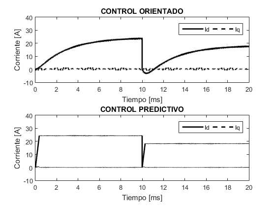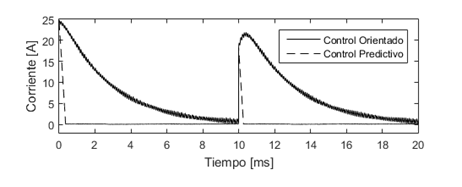 Se aprecia que el control predictivo de corriente tiene una mejor respuesta dinámica. Este controlador elimina rápidamente el error en la corriente, como se aprecia en Fig. 15.