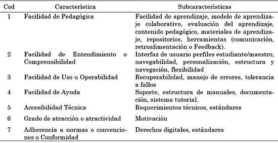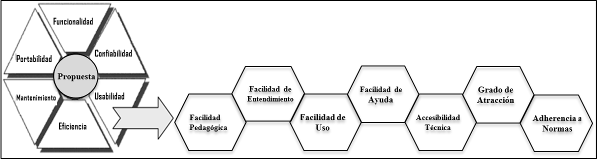 La propuesta cambia el nombre de la primera característica: facilidad de aprendizaje por facilidad de pedagógica y las otras subcaracterísticas se integraron al estándar ISO 25000, Ver Tabla 5.