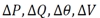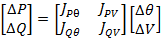 where represent incremental changes in real power, reactive power, voltage angle, and voltage magnitude of system nodes, respectively; and