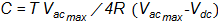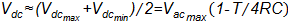 To estimate C, the model is simplified neglecting the inductance. So, the ripple of the rectified voltage oscillates between two values, Vdcmax and Vdcmin. If in some moment the value of Vdc falls until 0 VAC with the same slope of the oscillation, the decay time would be estimated as R .C seconds, therefore Vdc can be expressed with (10).