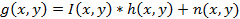 Donde n(x, y) es el ruido y * es la operación de convolución entre la imagen no degradada I (x, y) y la PSF h(x, y). De esta manera, se tiene como resultado la imagen degradada g(x, y) por la Función de Dispersión de Punto h(x, y). En esta investigación, la PSF es la Función de Transferencia que modela la difuminación (motion blur) que afecta a la imagen.