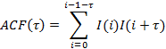 La correlación es la relación entre dos (o más) señales; esta se puede usar para determinar la dependencia entre las señales que intervienen. De forma análoga, la Función de Auto Correlación (ACF) cuantifica cuanto se relacionan dos muestras de un mismo proceso. La función de auto correlación está definida por (11):
