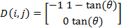 Para determinar la longitud de la PSF a partir de la función de auto correlación se debe realizar la convolución entre el kernel derivativo tangencial propuesto en [8] con la orientación θ sobre la imagen degradada para obtener la derivada direccional. Luego se ubica el ángulo para el cual la energía es mínima. Posteriormente se rota la imagen y se realiza la función de auto correlación sobre cada fila y se promedia. Por último, se ubica el punto donde el valor de la señal sea mínimo para identificar la longitud de la PSF. La ecuación (12) presenta el kernel derivativo tangencial usado para hallar la derivada direccional de la imagen.