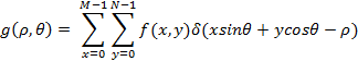 Donde f(x, y) es la imagen, M es el número de columnas de la imagen, N es el número de filas de la imagen, es el delta de Dirac, θ es el ángulo formado