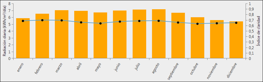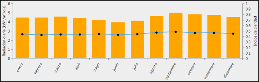 Fuente: autores.Promedio anual: 4.49 kWh/m2/día.