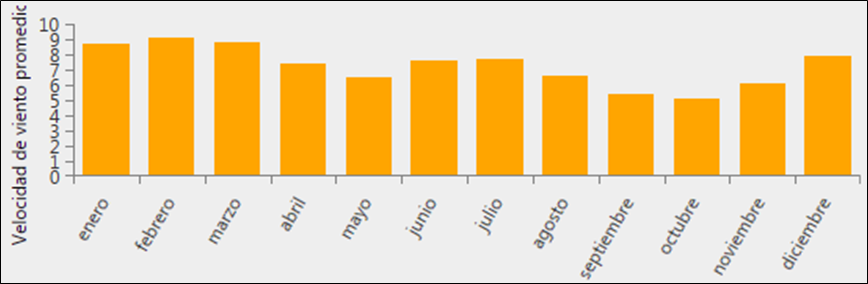 Fuente: autores.Promedio anual: 7.26 m/s.