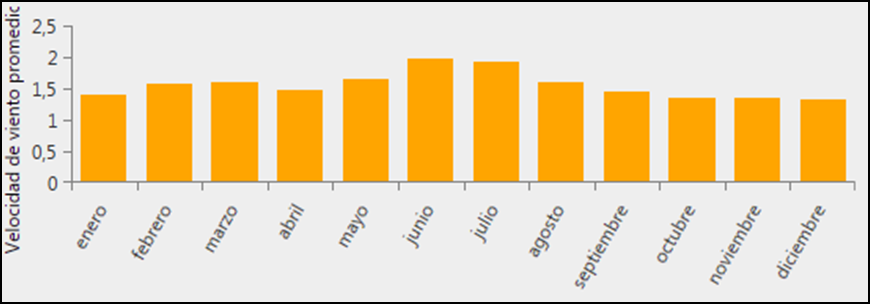 Fuente: autores.Promedio anual: 1.56 m/s.