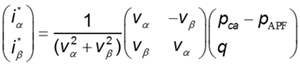 Donde, x ={v,i} representa una tensión o una señal de corriente. La potencia activa p y reactiva q se calculan en el sistema de referencia α-β-0 mediante las ecuaciones (3) y (4).
