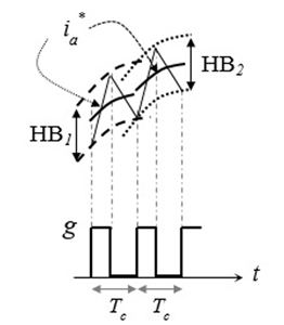 Si error < (ia* - 0.5HB) entonces g = 1 y el interruptor superior se activa.