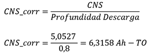 Teniendo en cuenta la profundidad de la descarga de cada una de las baterías es necesario aplicar un factor de corrección, el cual está determinado por (3):