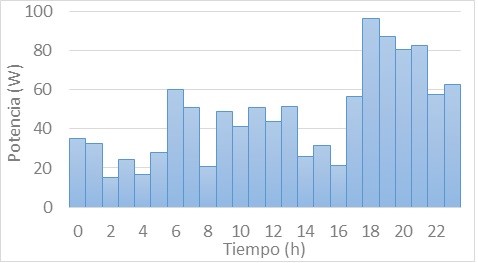 Emula el comportamiento de la demanda eléctrica de la vivienda a partir del encendido y apagado de las 20 cargas resistivas que representan los 20 circuitos presentados en la Tabla 1. Este módulo permite realizar el cierre y la apertura de circuitos a partir de las señales emitidas por un microcontrolador, por tanto, puede emular una curva de demanda a partir de parámetros programados o manuales. Con el fin de emular el comportamiento de un sistema de generación y consumo aislado a partir de fuentes no convencionales de energía, en este artículo se empleó el módulo de carga programando un perfil de demanda preestablecido, como se observa en la sección 3.3.