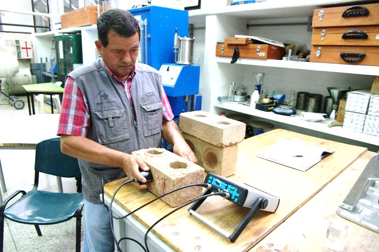 Los bloques se fabricaron según los parámetros de la norma NTC 5324 [16] con dimensiones de 0.095 m de alto, 0.14 m de ancho y 0.295 m de longitud aligerados con perforación vertical; y las probetas cilíndricas se fabricaron según los parámetros de la norma UNE PrUNE 83.982 [17] y la norma ASTM C1585-04 [18] con dimensiones de 0.10 m de diámetro y 0.05 m de alto.