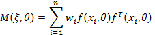 La matriz de información permite cuantificar la información aportada por un diseño dado. La expresión de esta se encuentra en la ecuación (3):