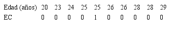 En esta sección se implementa la metodología presentada en la sección 3.1 a partir de datos encontrados en la literatura [19], listan edades en años, y la presencia o ausencia de enfermedad coronaria (EC) para 100 individuos seleccionados para participar en un estudio. En la Tabla 1 se listan las primeras 10 observaciones del estudio en mención. La variable respuesta, en este caso es EC, toma valores cero o uno, donde el valor cero indica ausencia, y el valor uno que existe presencia de enfermedad coronaria en el individuo. El interés particular es establecer la relación entre la edad del individuo y el desarrollo de la enfermedad coronaria.