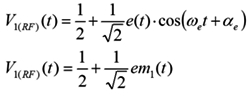 where e(t) represents the information band; wet, the subcarrier’s frequency; and αe, the phase signal. Therefore, the expressions that define the electrical signals at the input of the modulator are given by (6) and (7).